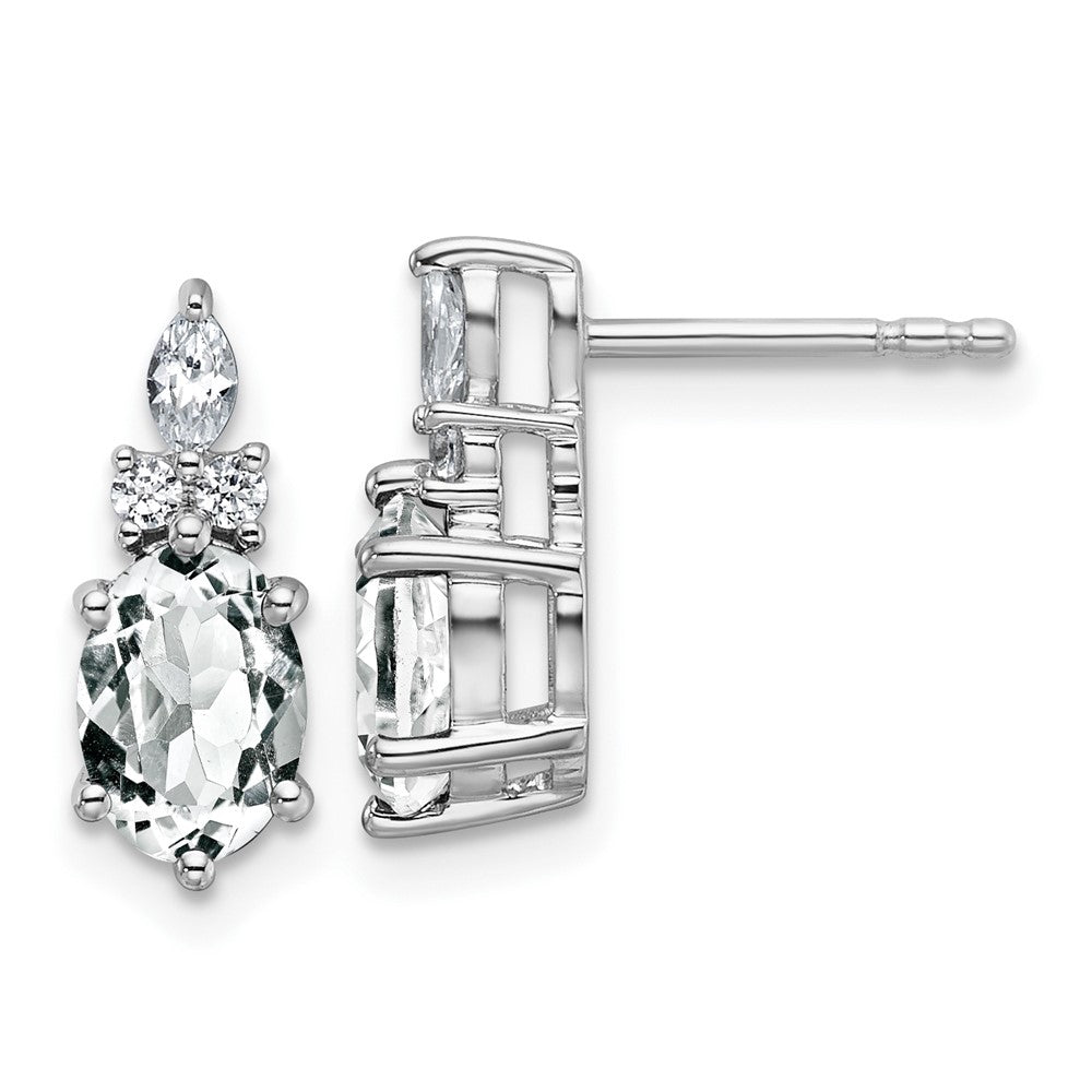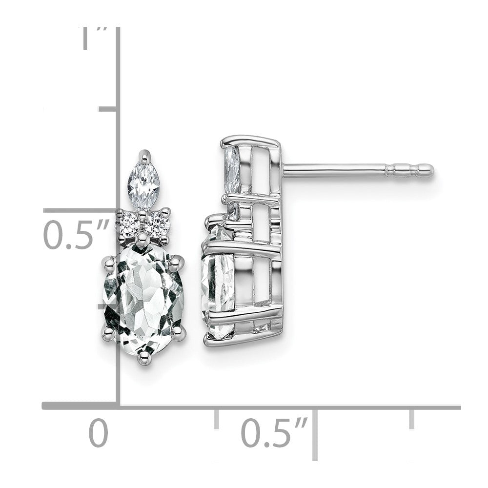 14K White Gold Polished Diamond and White Topaz Twisted Post Earrings