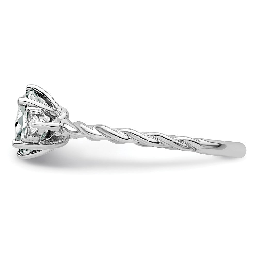 14K White Gold Polished Diamond and White Topaz Twisted Ring