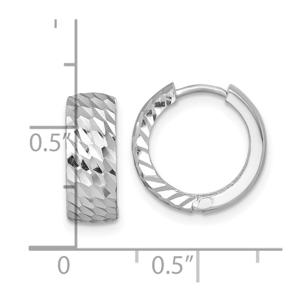 14k White Gold Polished Diamond-cut Round Hinged Hoop Earrings