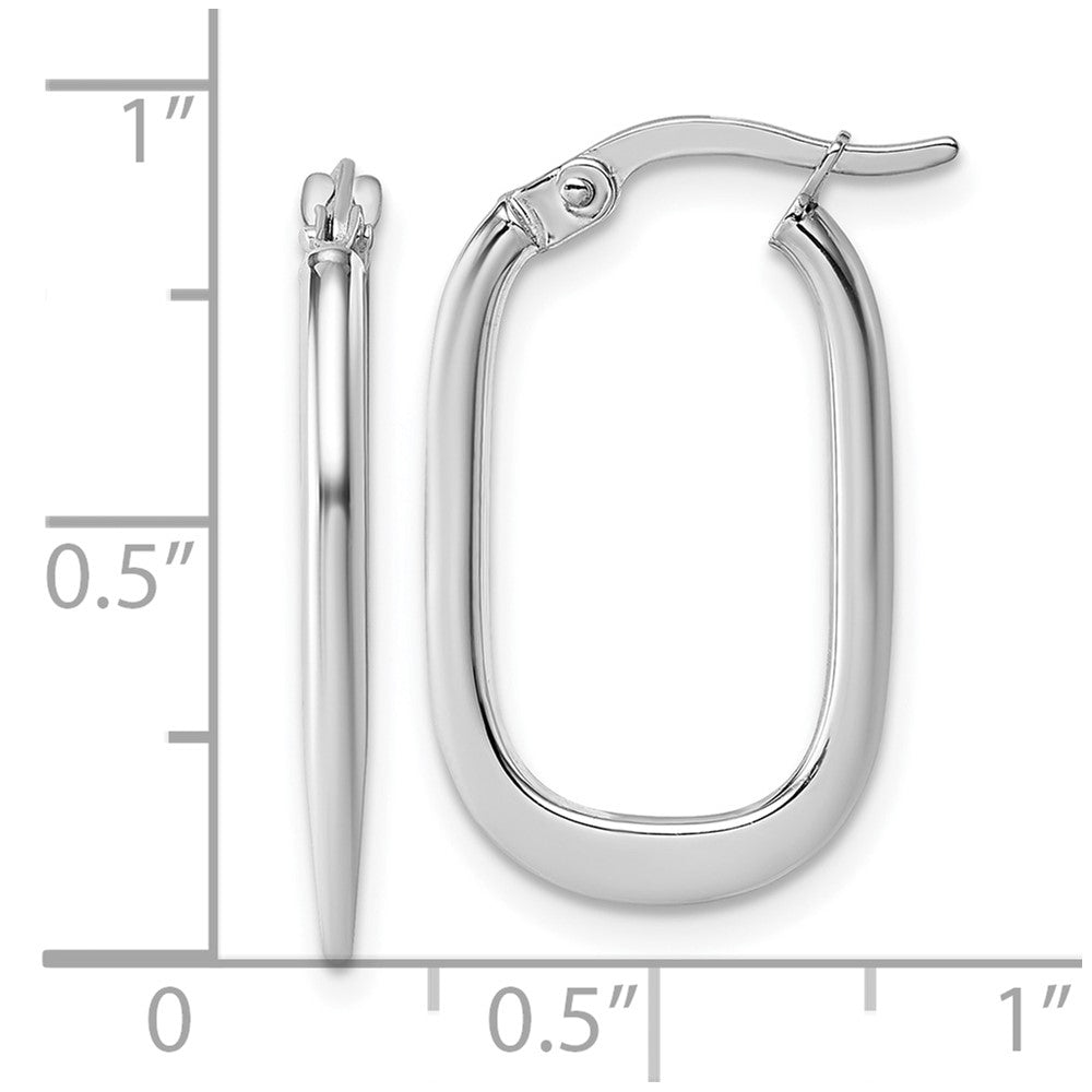 14k White Gold Polished Oval Tapered Tube Hoop Earrings