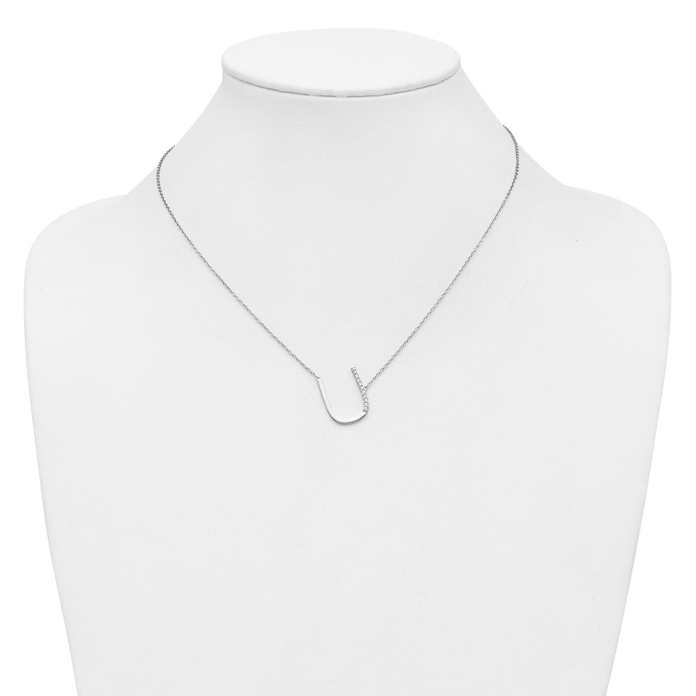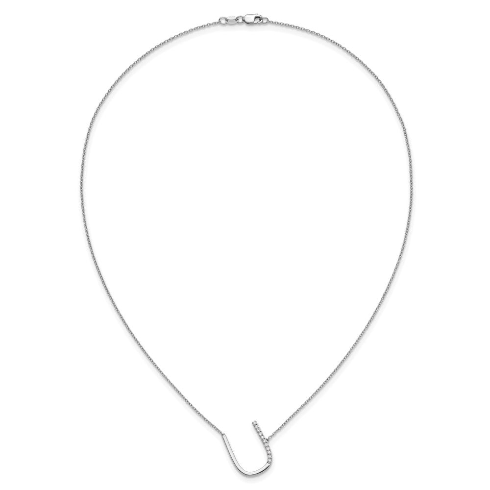 14K White Gold Sideways Diamond Initial U Necklace