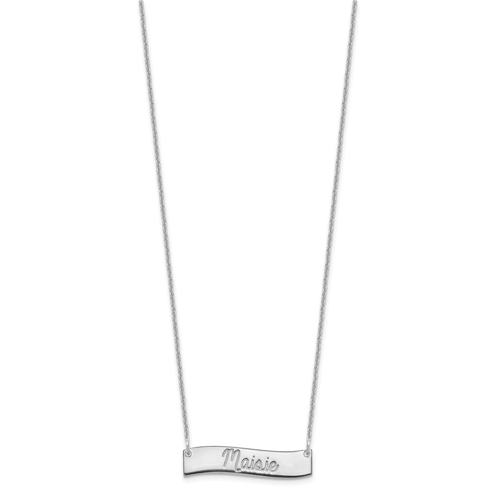14k White Gold Small ALWAYS IN MY HEART Curved Bar Necklace