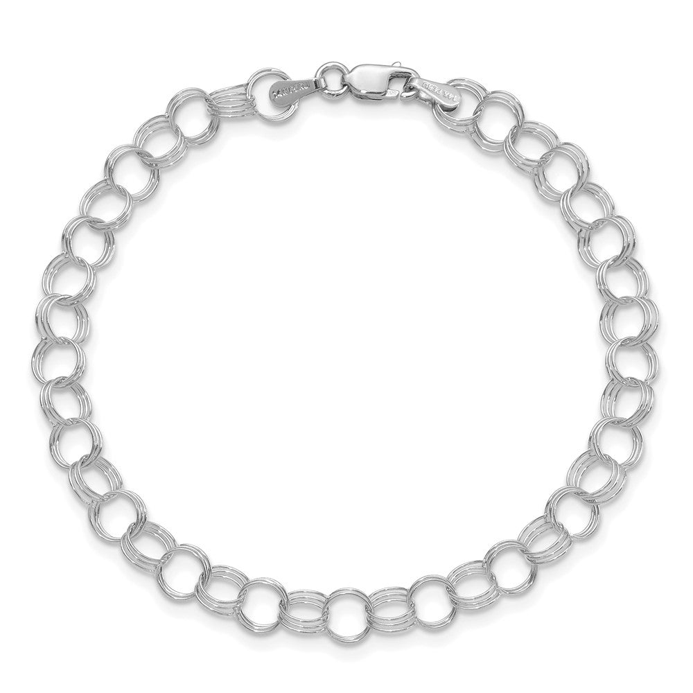 14k White Gold Solid Triple Link Charm Bracelet