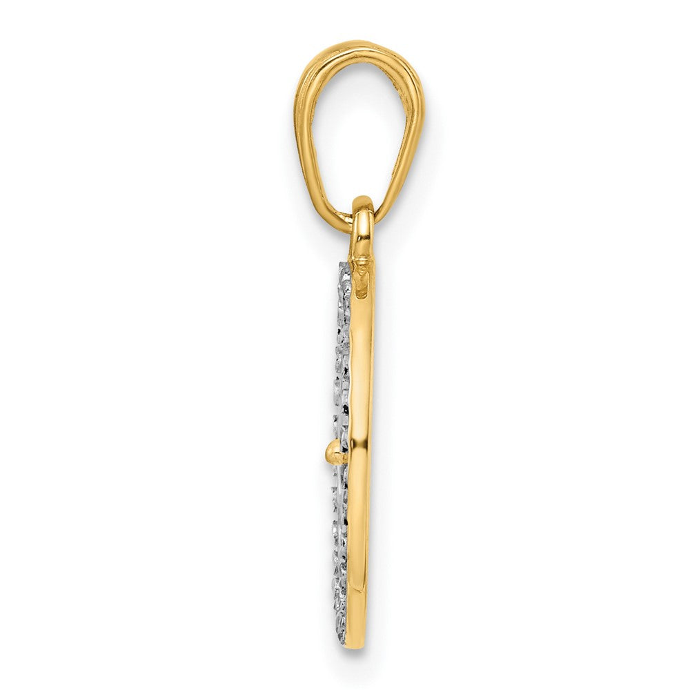 14K w/White Rhodium Diamond-cut Four-leaf Clover Pendant