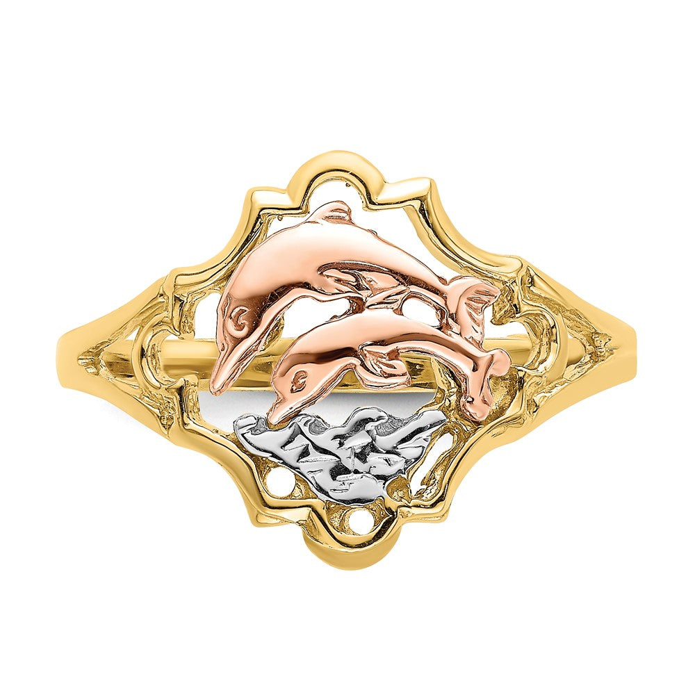 14K Yellow and Rose Gold W/Rhodium Double Dolphin Ring