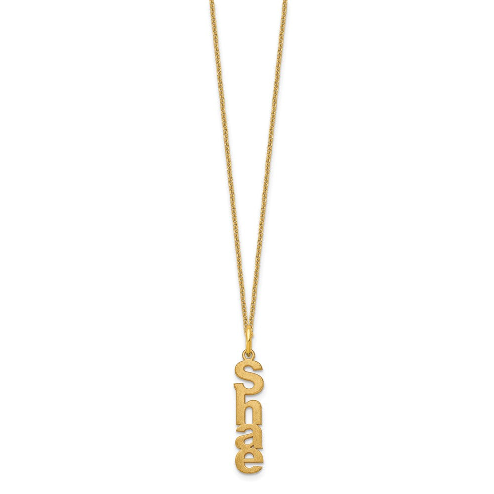 14k Yellow Gold Brushed Vertical 1 Name Charm Necklace