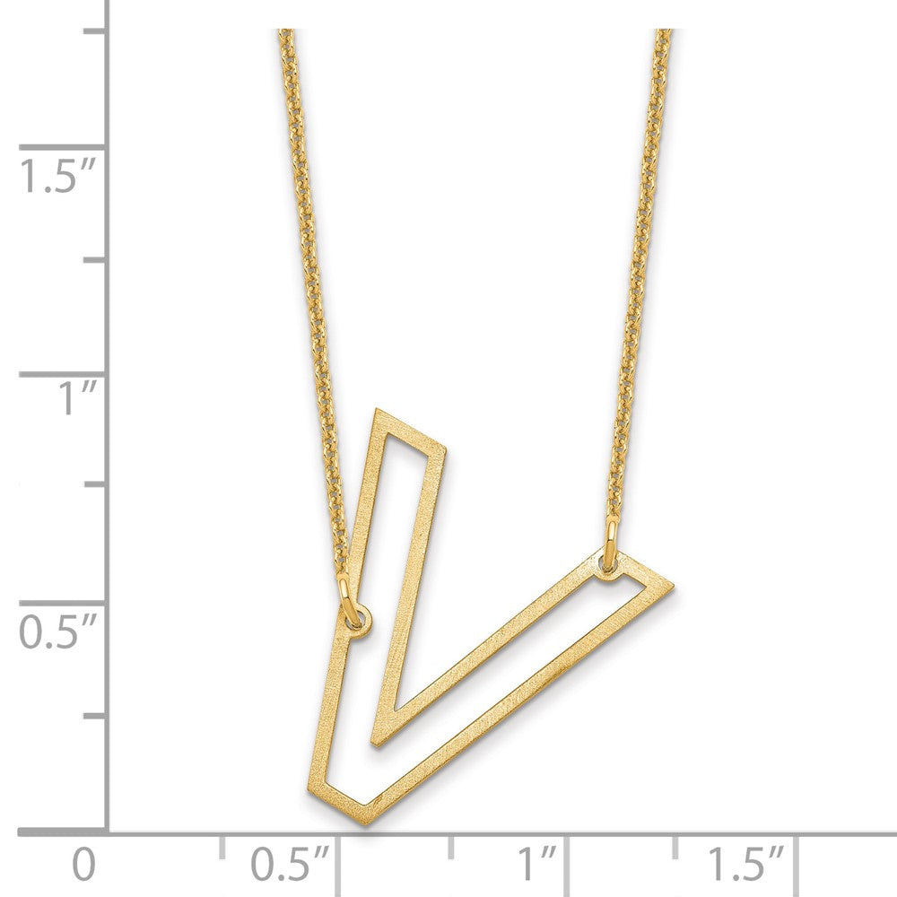 14k Yellow Gold Sideways Cut Out Initial V Necklace