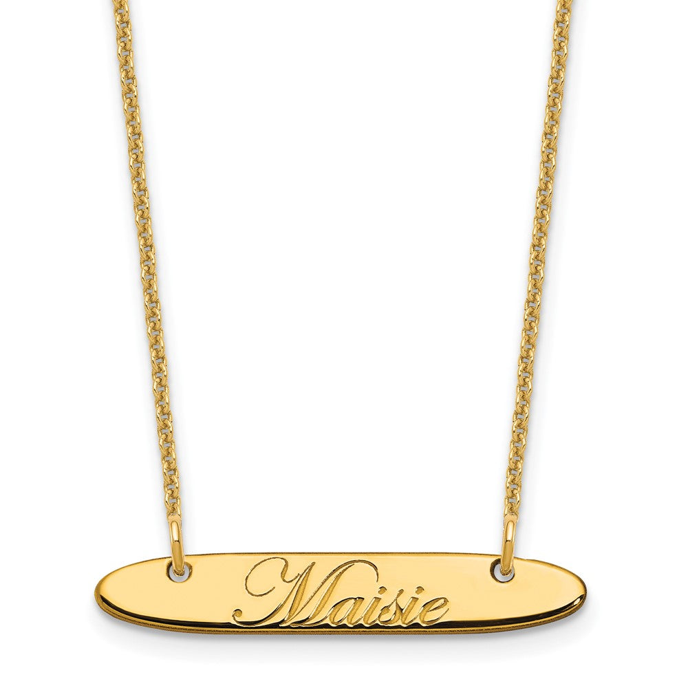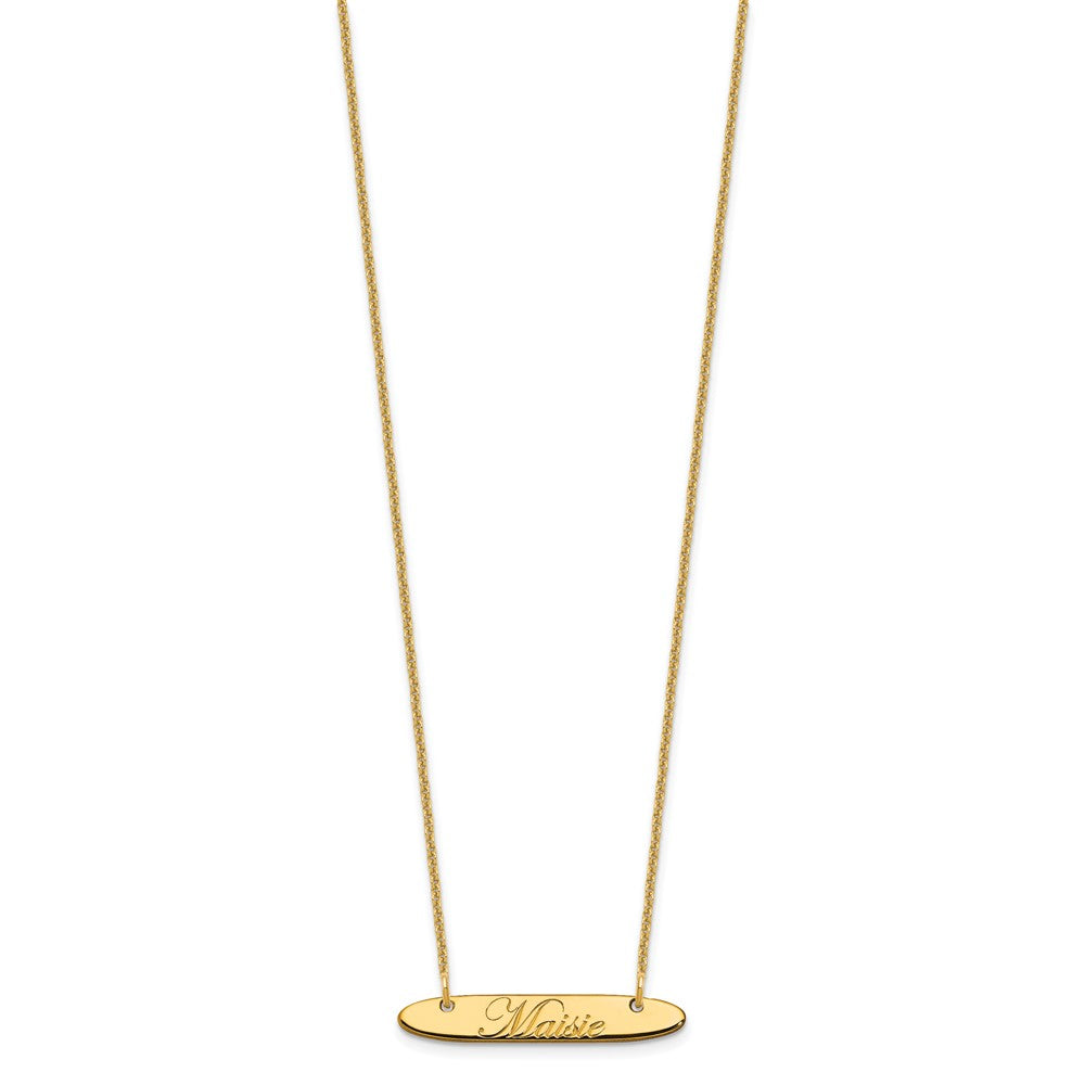 14k Yellow Gold Small Oblong EDWARDIAN SCRIPT Bar Necklace