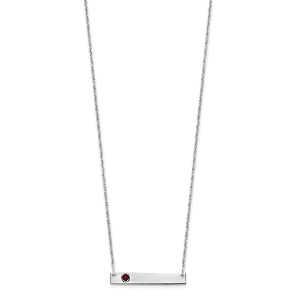 14KW 1 Birthstone w/ 18k Rhodium Plated Bezel Small Bar Necklace