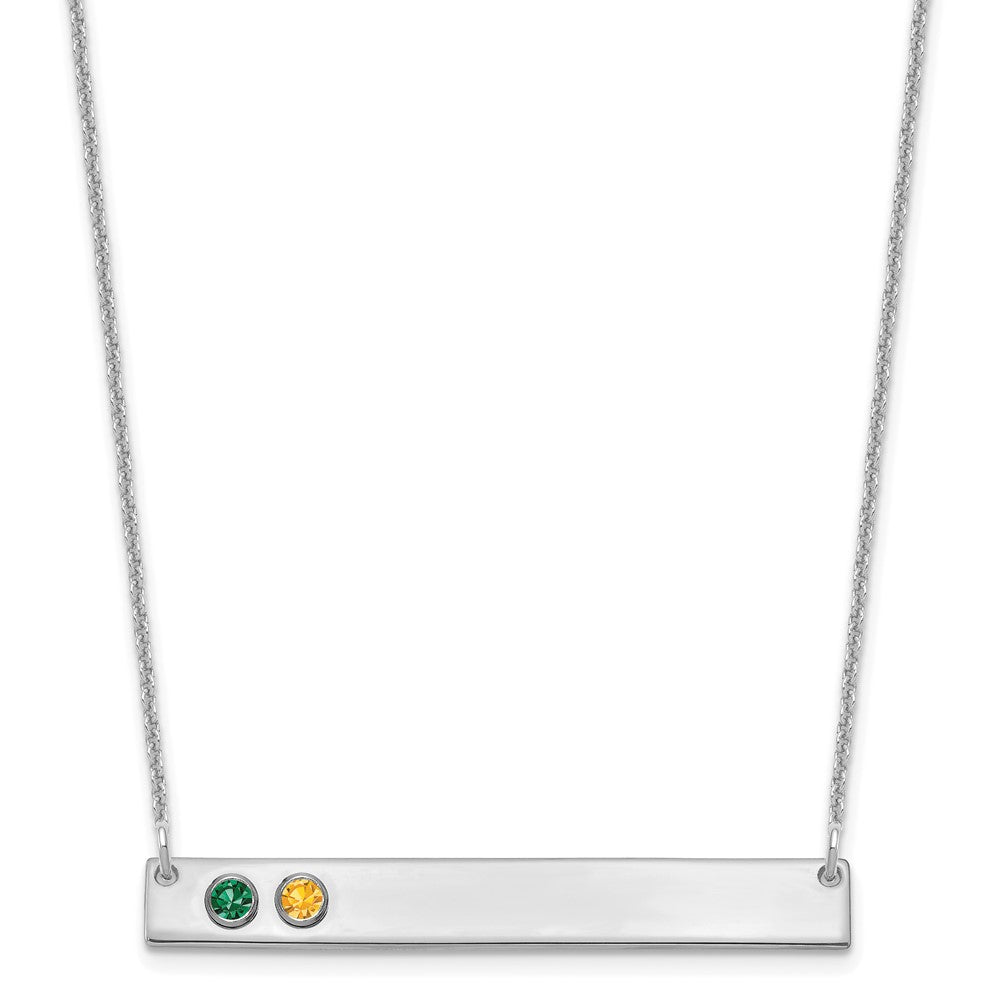 14KW 2 Birthstone w/ 18k Rhodium Plated Bezel Large Bar Necklace