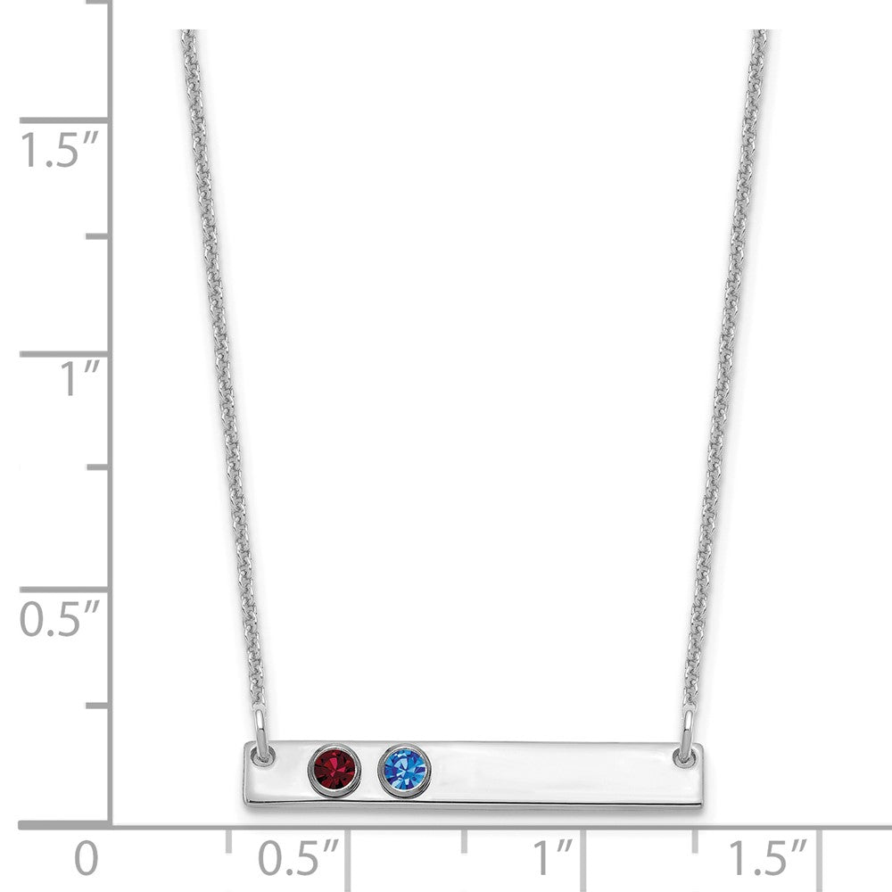 14KW 2 Birthstone w/ 18k Rhodium Plated Bezels Small Bar Necklace
