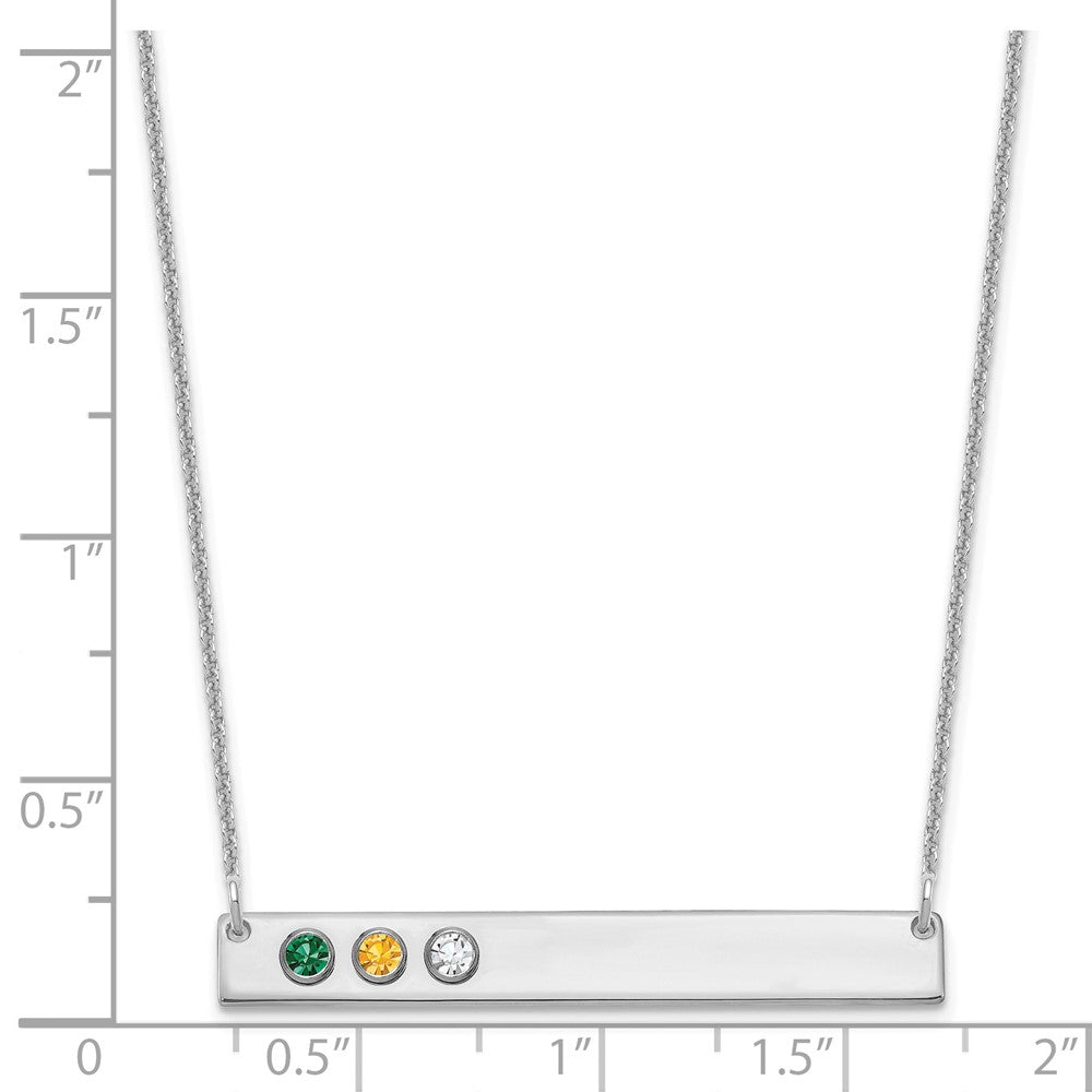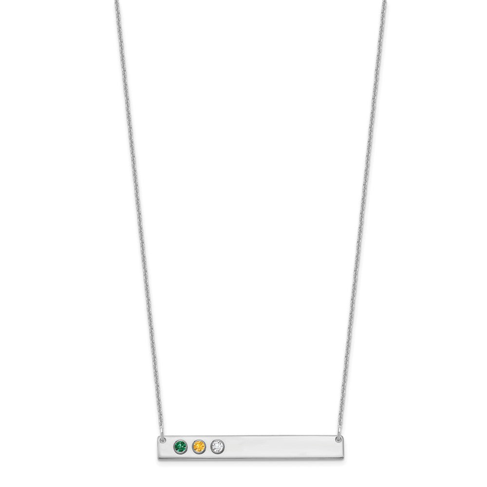 14KW 3 Birthstone w/ 18k Rhodium Plated Bezels Large Bar Necklace