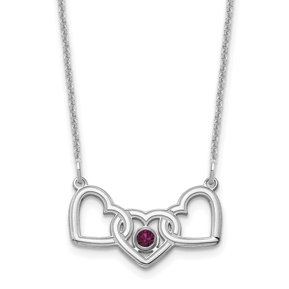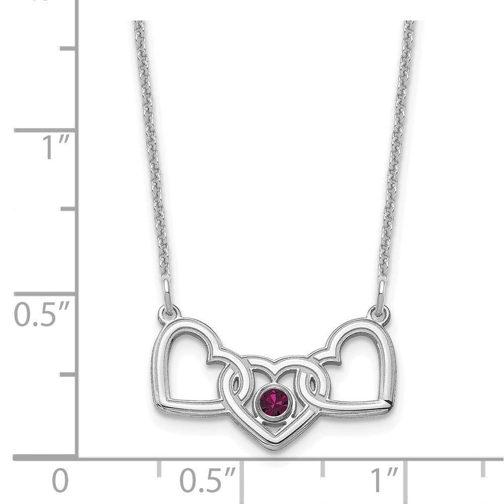 14KW 3 Hearts 1 Birthstone w/ 18k Rhodium Plated Bezel Necklace