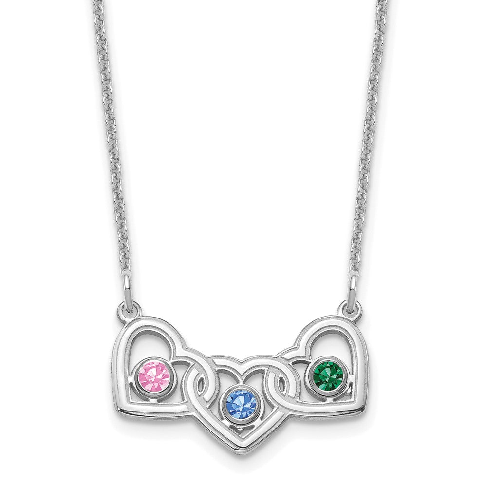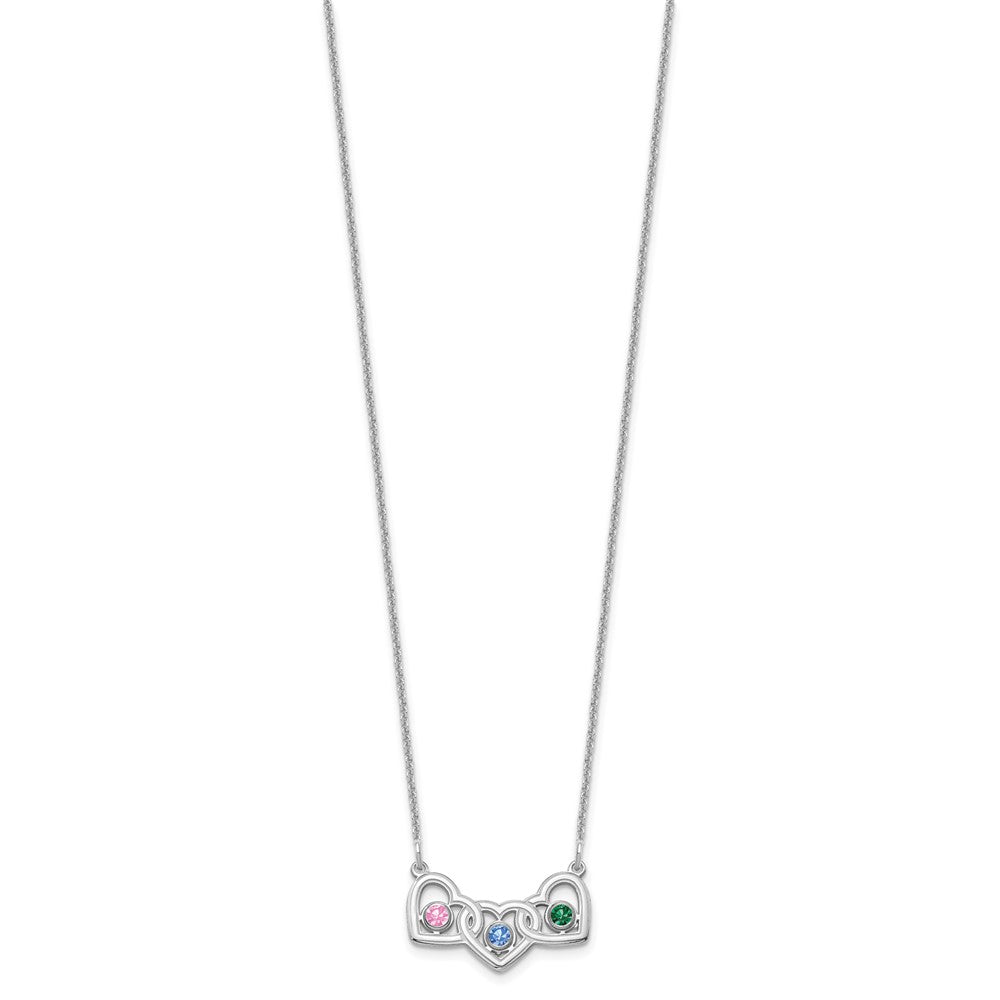 14KW 3 Hearts 3 Birthstones w/ 18k Rhodium Plated Bezels Necklace