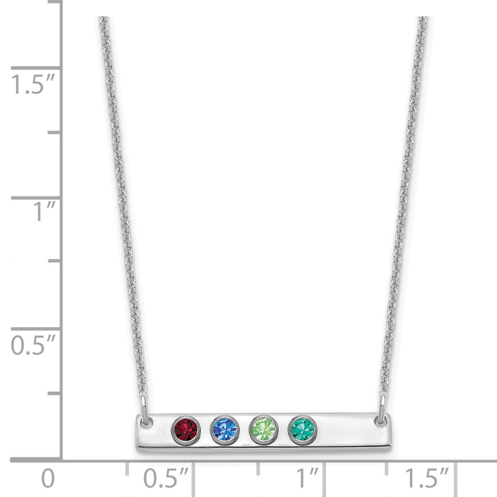 14KW 4 Birthstone w/ 18k Rhodium Plated Bezels Small Bar Necklace