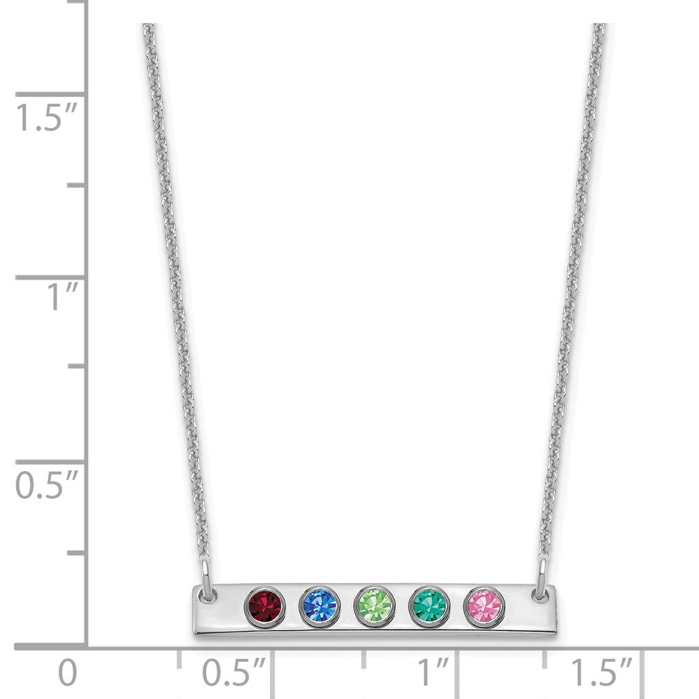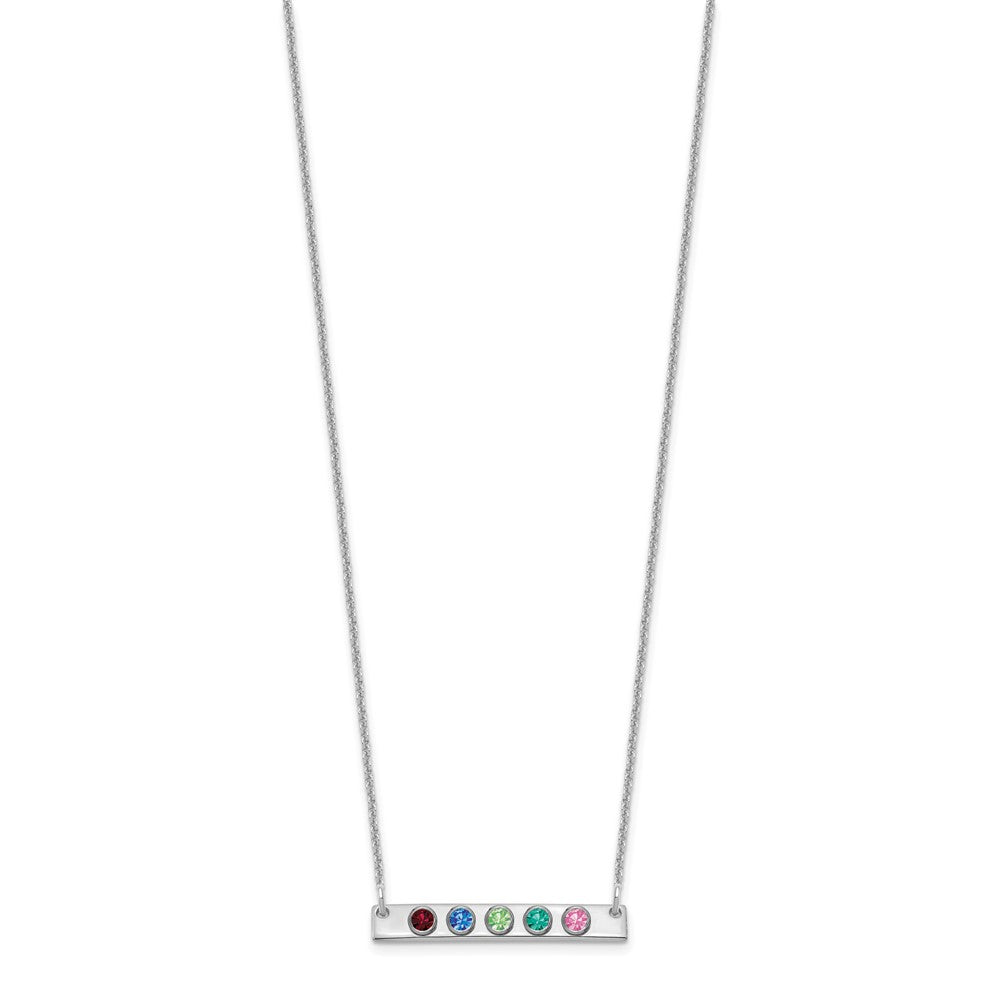 14KW 5 Birthstone w/ 18k Rhodium Plated Bezels Small Bar Necklace
