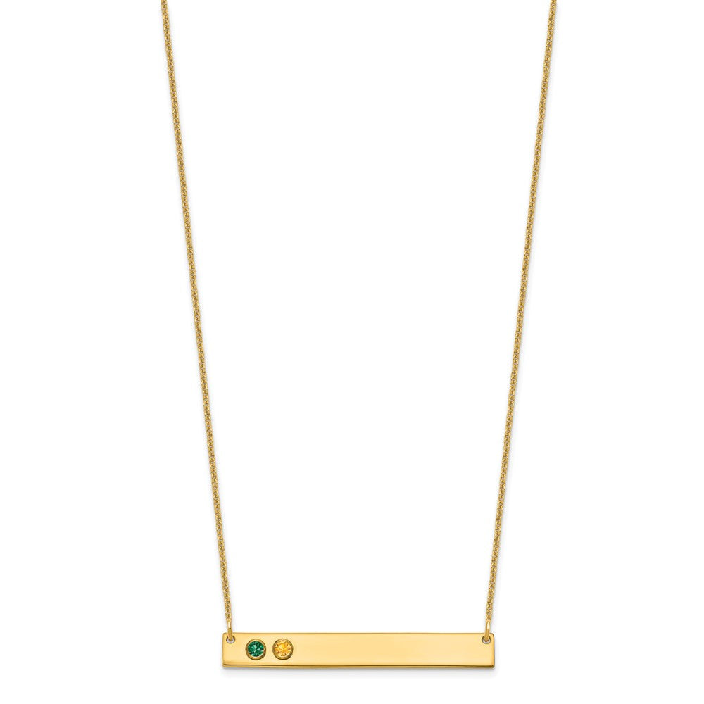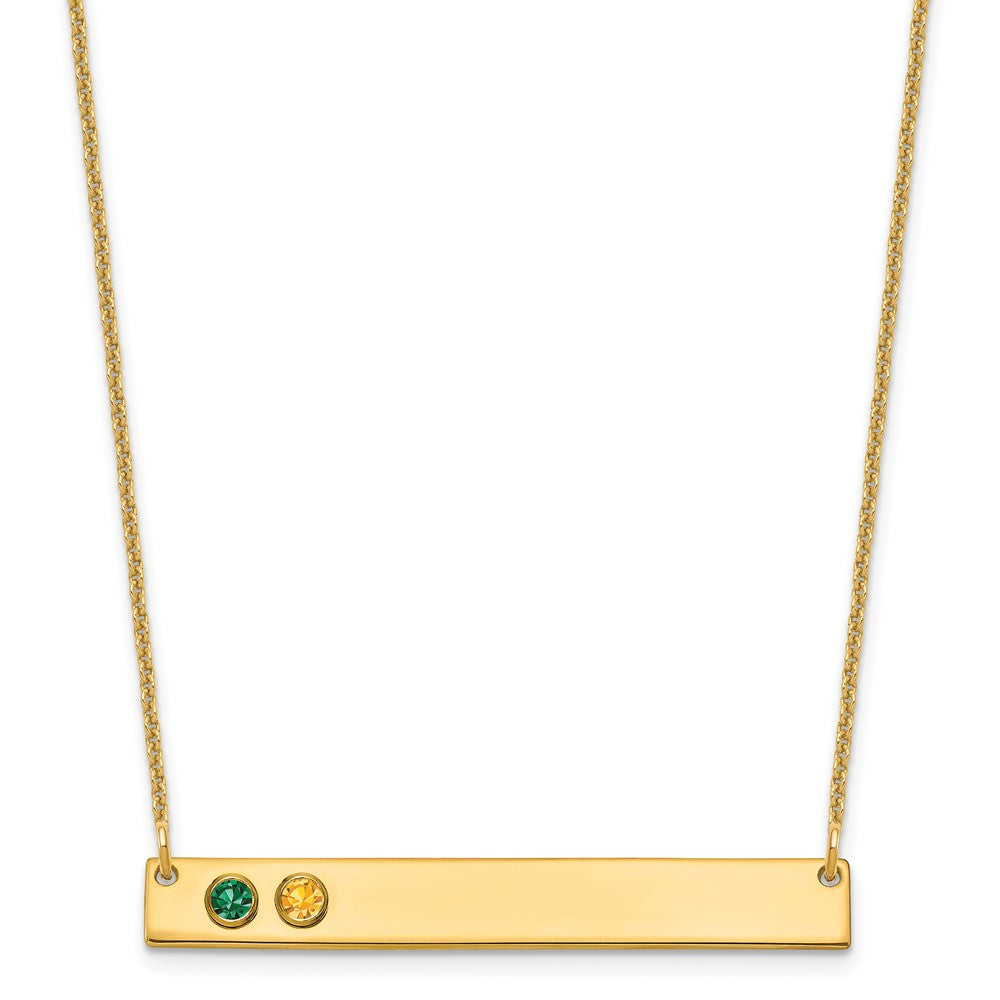 14KY 2 Birthstone w/ 14k Bezel Large Bar Necklace