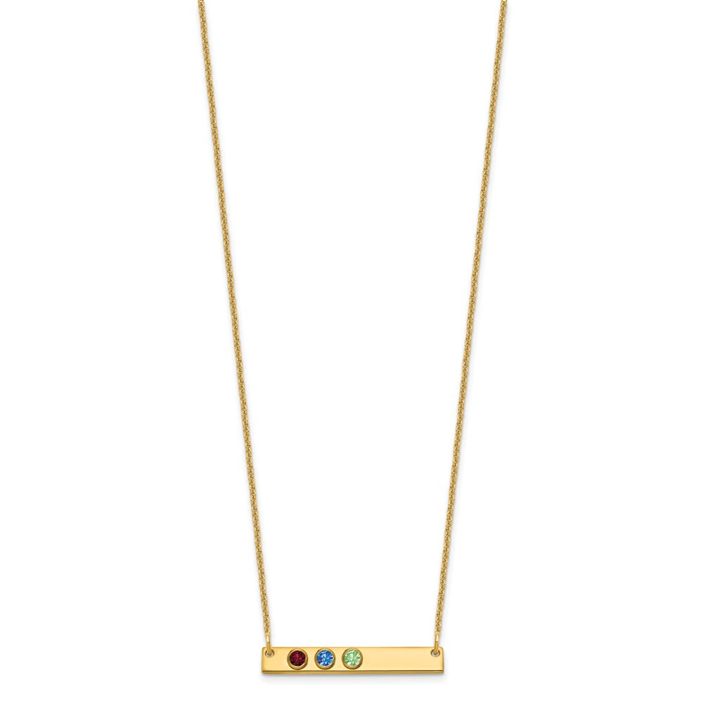 14KY 3 Birthstone w/ 14k Bezel Small Bar Necklace