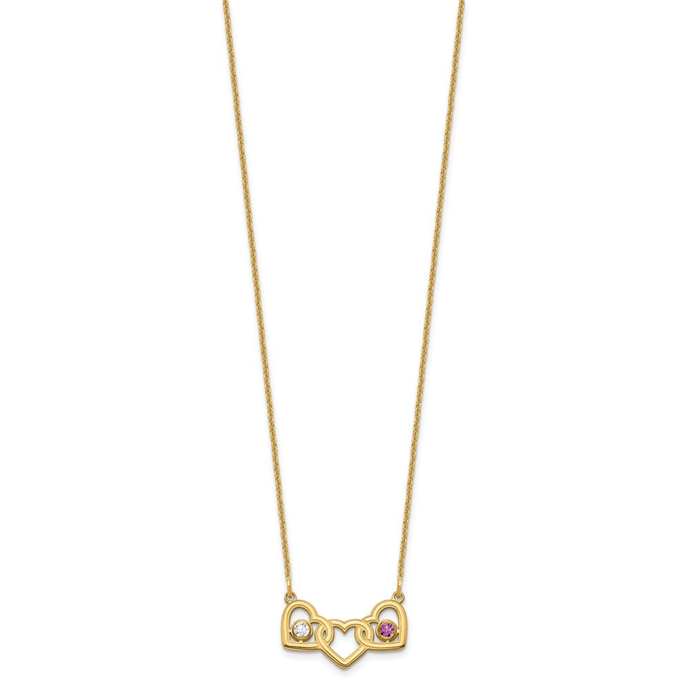 14KY 3 Hearts 2 Birthstones w/ 14k Bezel Necklace