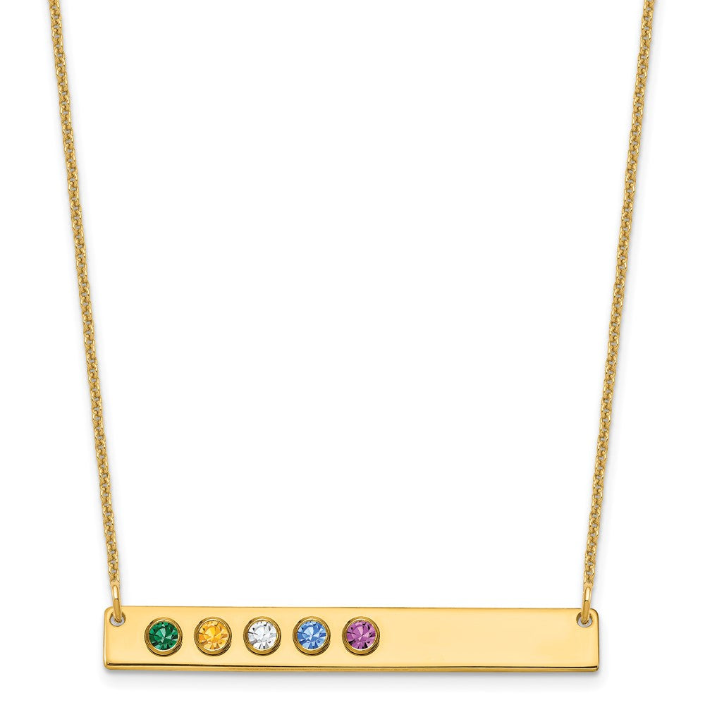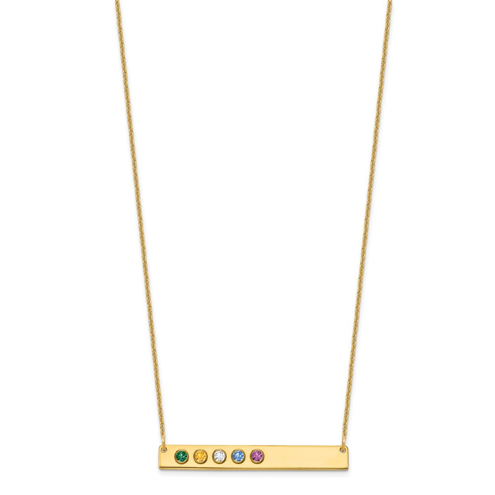 14KY 5 Birthstone w/ 14k Bezel Large Bar Necklace