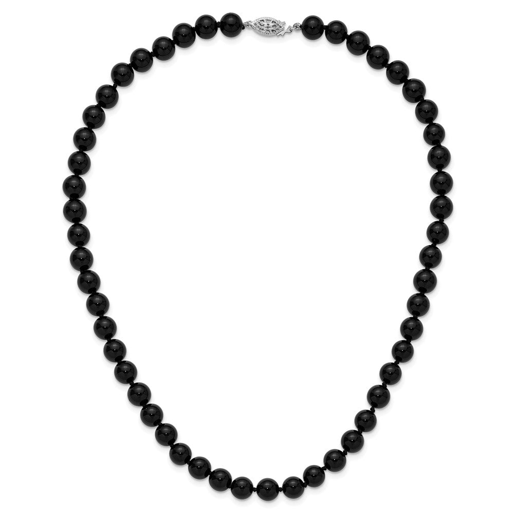 8- Smooth Beaded Black Agate Necklace w/Sterling S.RH Clasp