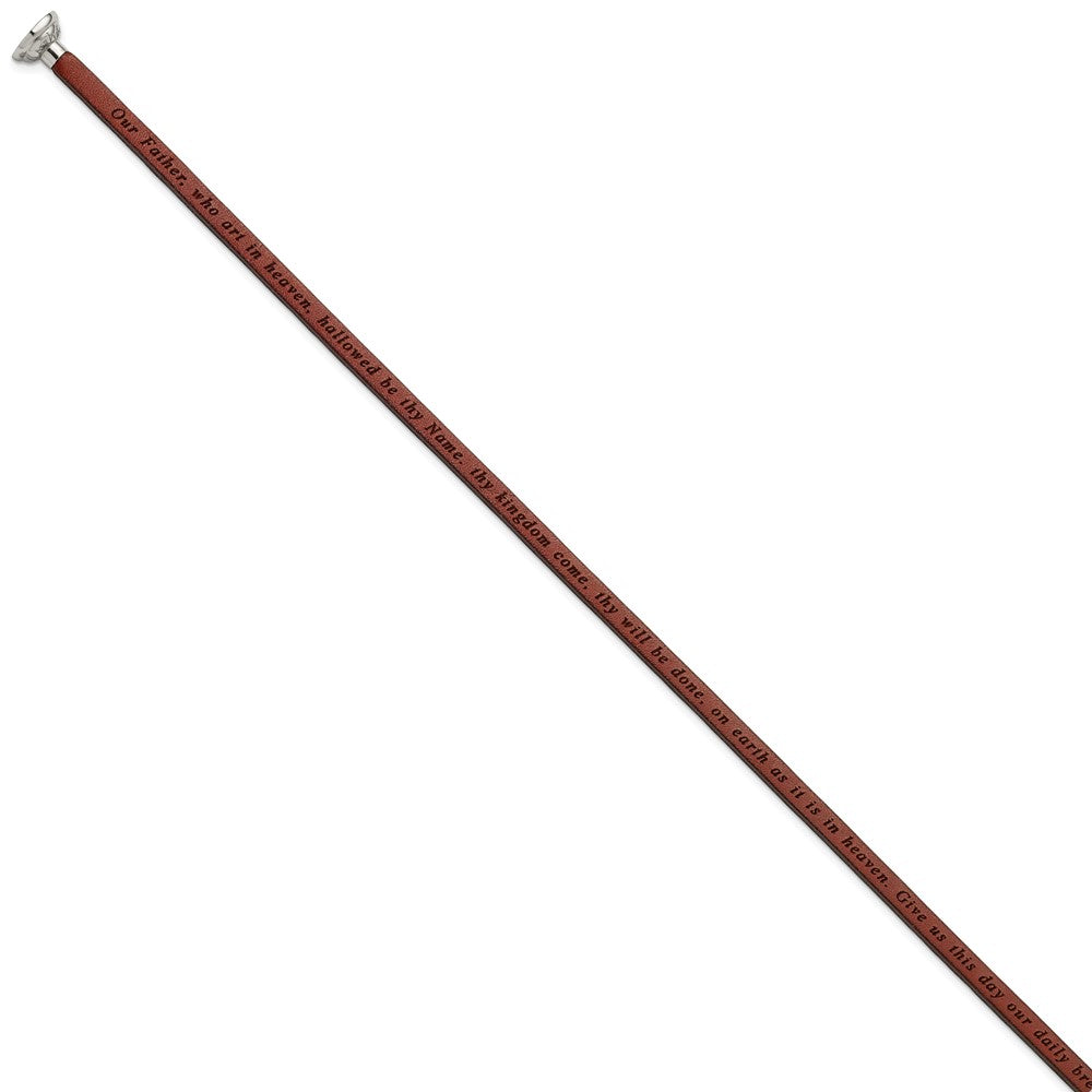 AMEN Stainless Steel Lord's Prayer Brown Leather Wrap with Magnetic Clasp with Magnetic Clasp 22. Bracelet
