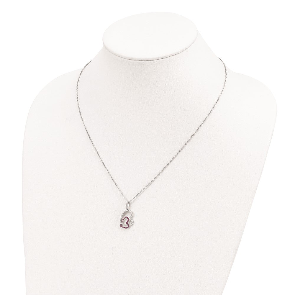 Brilliant Embers Sterling Silver Rhodium-plated 62 Stone Micro Pav Red and White CZ Heart Necklace with Extender