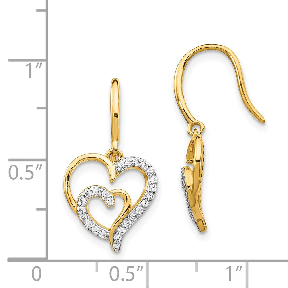 Cheryl M Sterling Silver Gold-plated Brilliant-cut CZ Heart Dangle Earrings