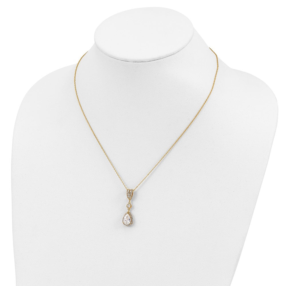 Cheryl M Sterling Silver Gold-plated Brilliant-cut CZ Teardrop and Bezel Halo Necklace