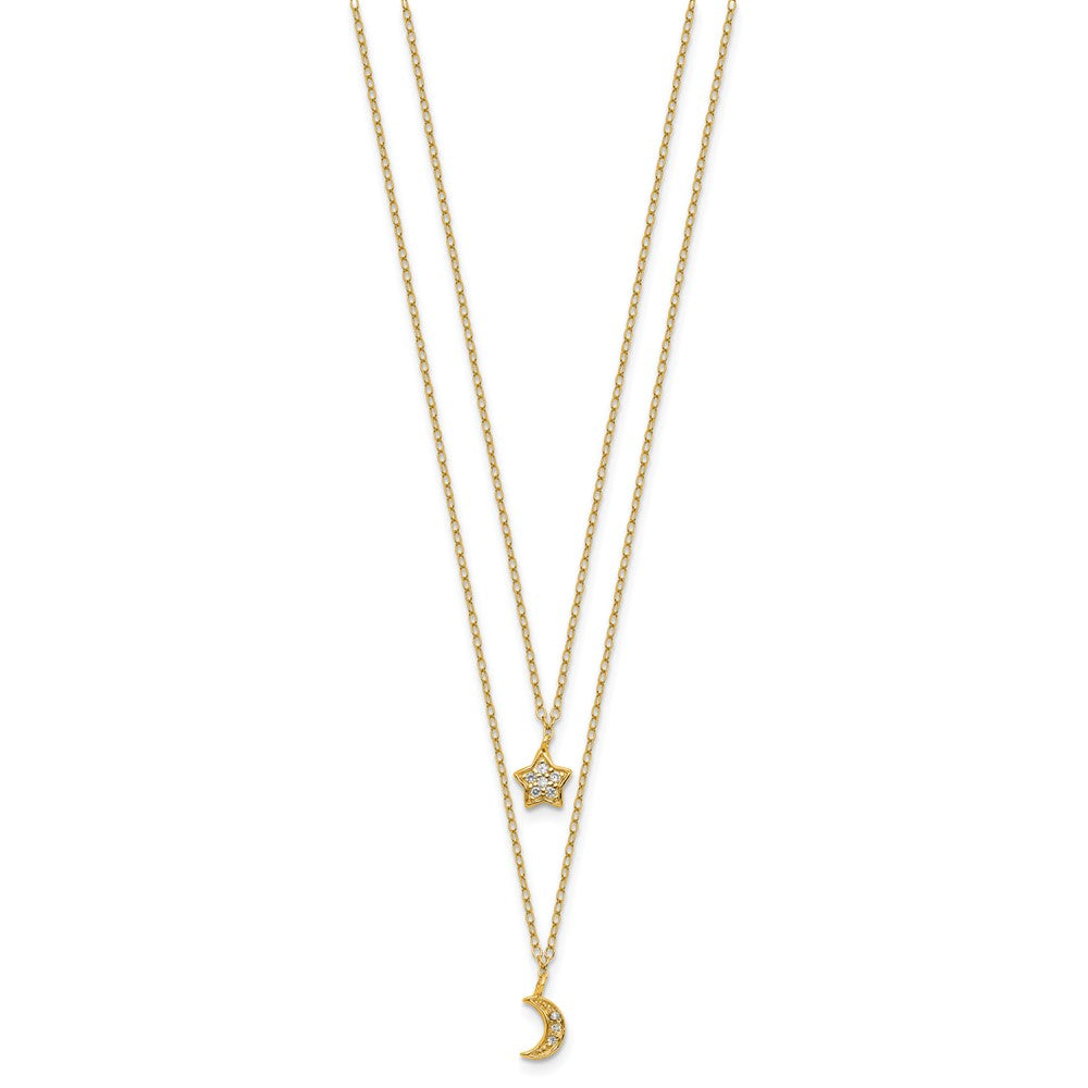 Cheryl M Sterling Silver Gold-plated Polished 2-Strand CZ Moon and Star with Extension Necklace