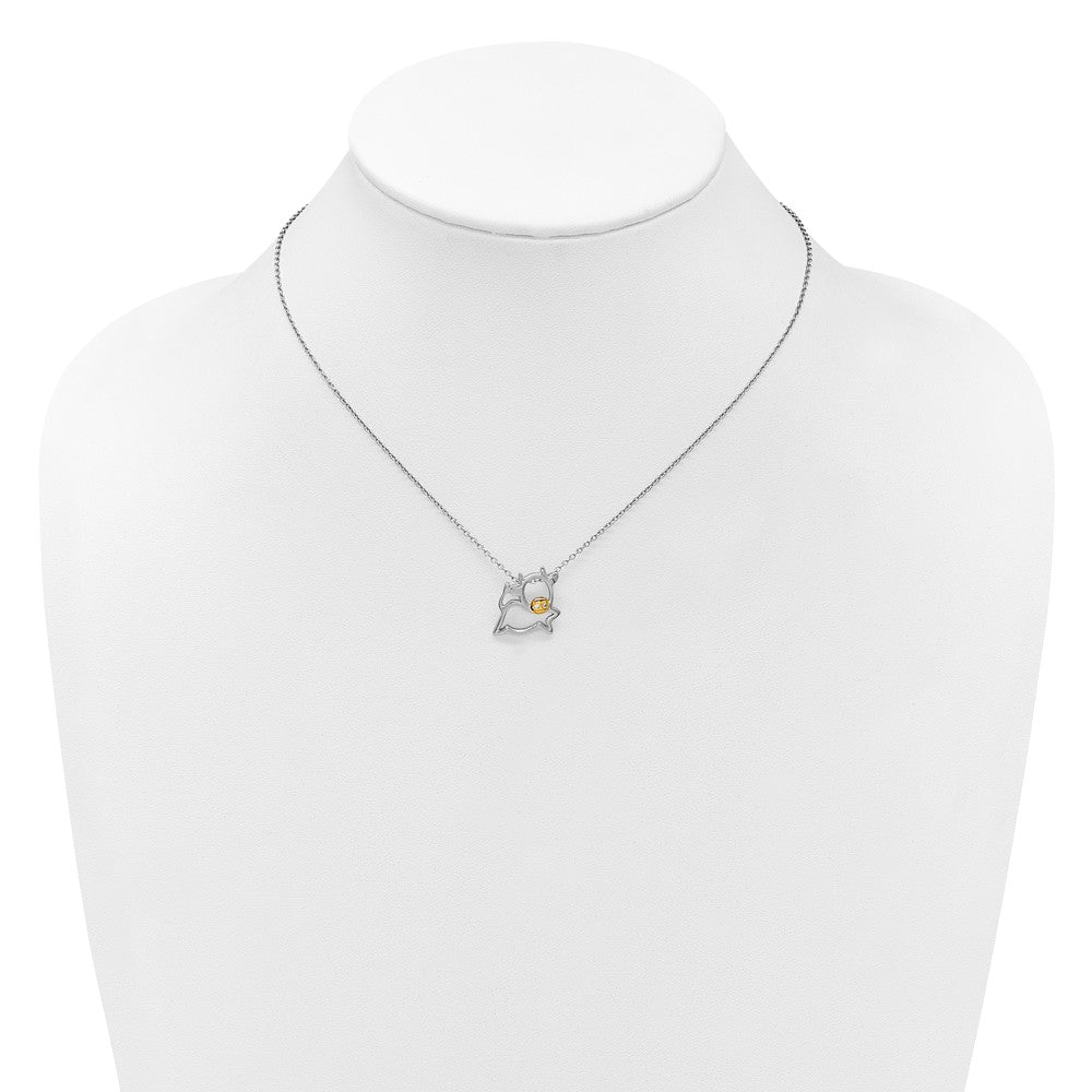 Cheryl M Sterling Silver Rhodium and Gold-plated Polished CZ Cow with Extension Necklace