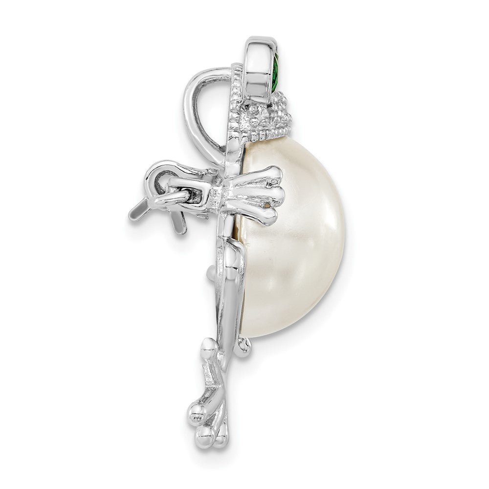 Cheryl M Sterling Silver Rhodium-plated Acrylic Pearl and Brilliant-cut Green and White CZ Frog Pin