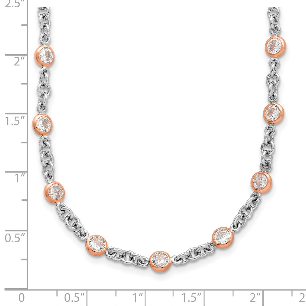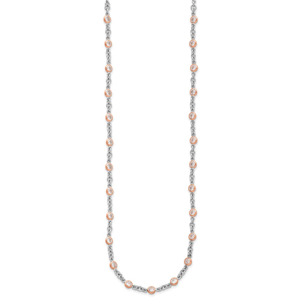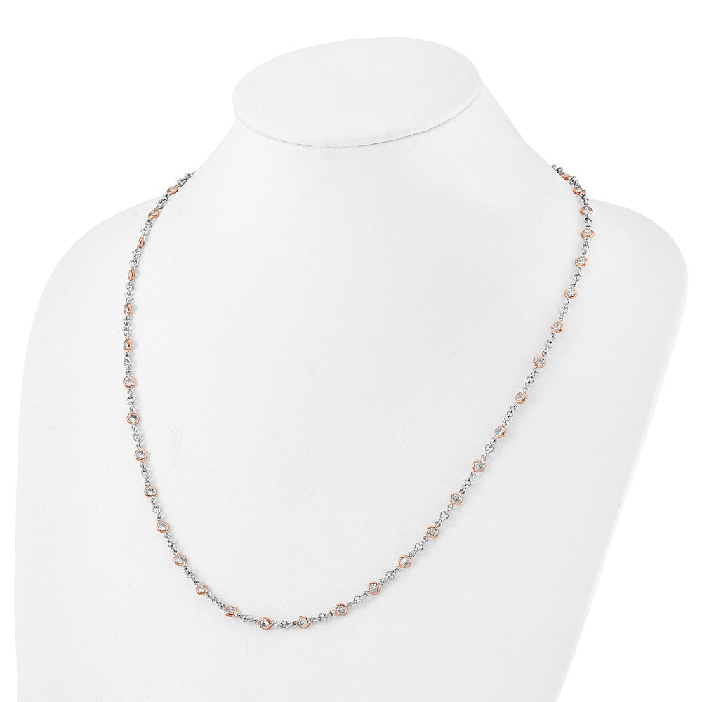 Cheryl M Sterling Silver Rhodium-plated and Rose Gold-plated Accent Brilliant-cut CZ Bezel 42 Station Necklace