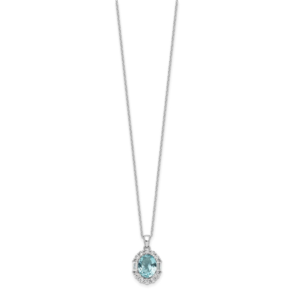 Cheryl M Sterling Silver Rhodium-plated Blue & White Brilliant-cut and Emerald-cut CZ Oval Necklace with Extender