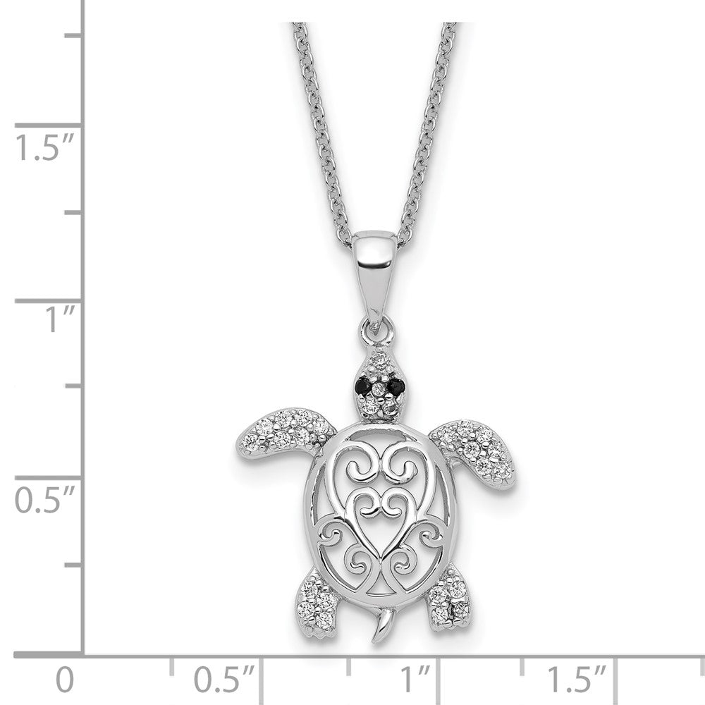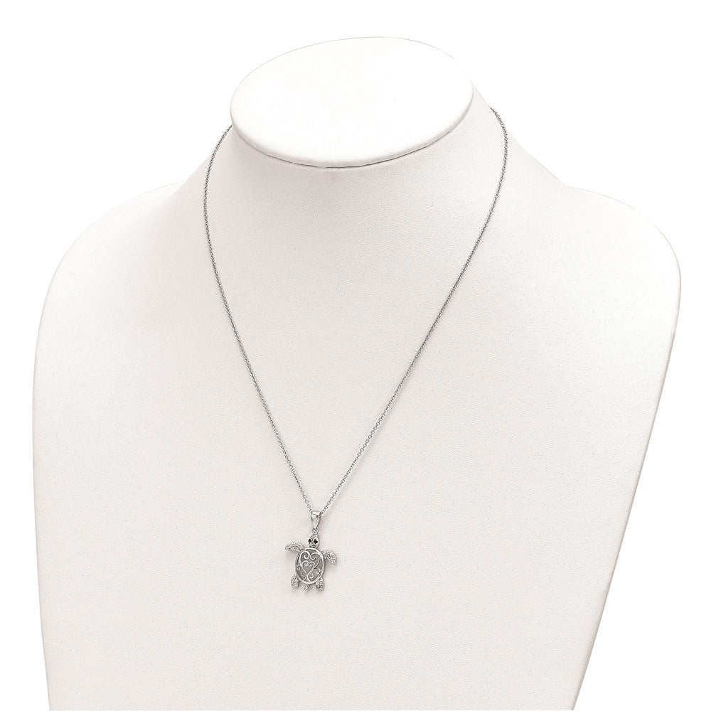 Cheryl M Sterling Silver Rhodium-plated Brilliant-cut Black Glass and Brilliant-cut White CZ Filigree Turtle Necklace