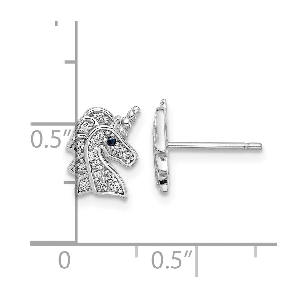 Cheryl M Sterling Silver Rhodium-plated Brilliant-cut Black & White CZ Unicorn Post Earrings