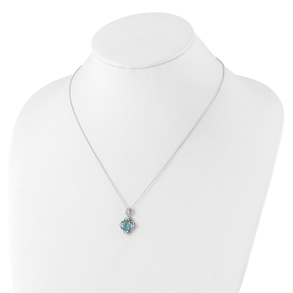 Cheryl M Sterling Silver Rhodium-plated Brilliant-cut Blue Glass and White CZ Necklace