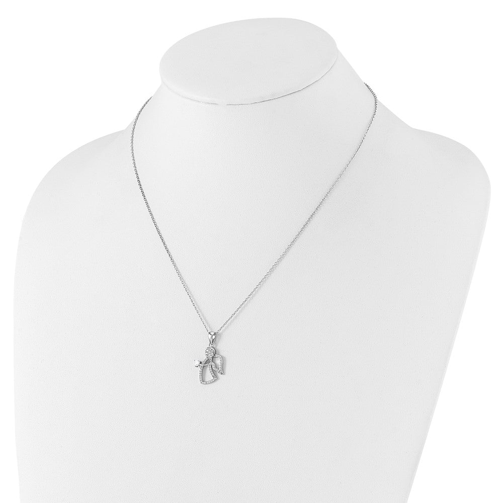 Cheryl M Sterling Silver Rhodium-plated Brilliant-cut CZ Angel Necklace with Extender