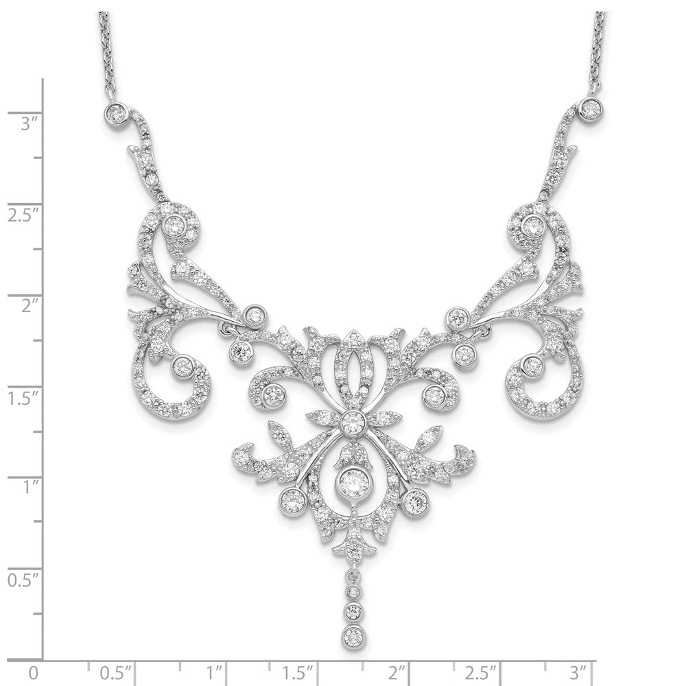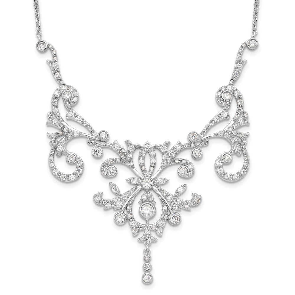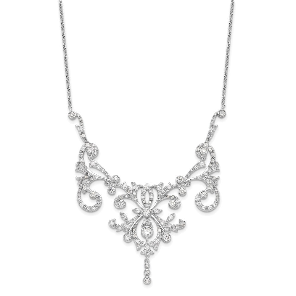 Cheryl M Sterling Silver Rhodium-plated Brilliant-cut CZ Bezel Fancy Scroll Necklace with Extender