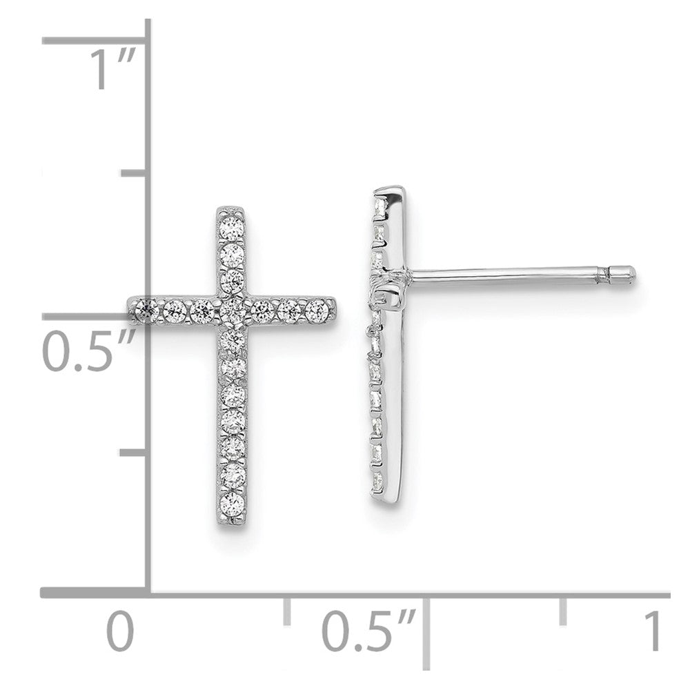 Cheryl M Sterling Silver Rhodium-plated Brilliant-cut CZ Cross Post Earrings