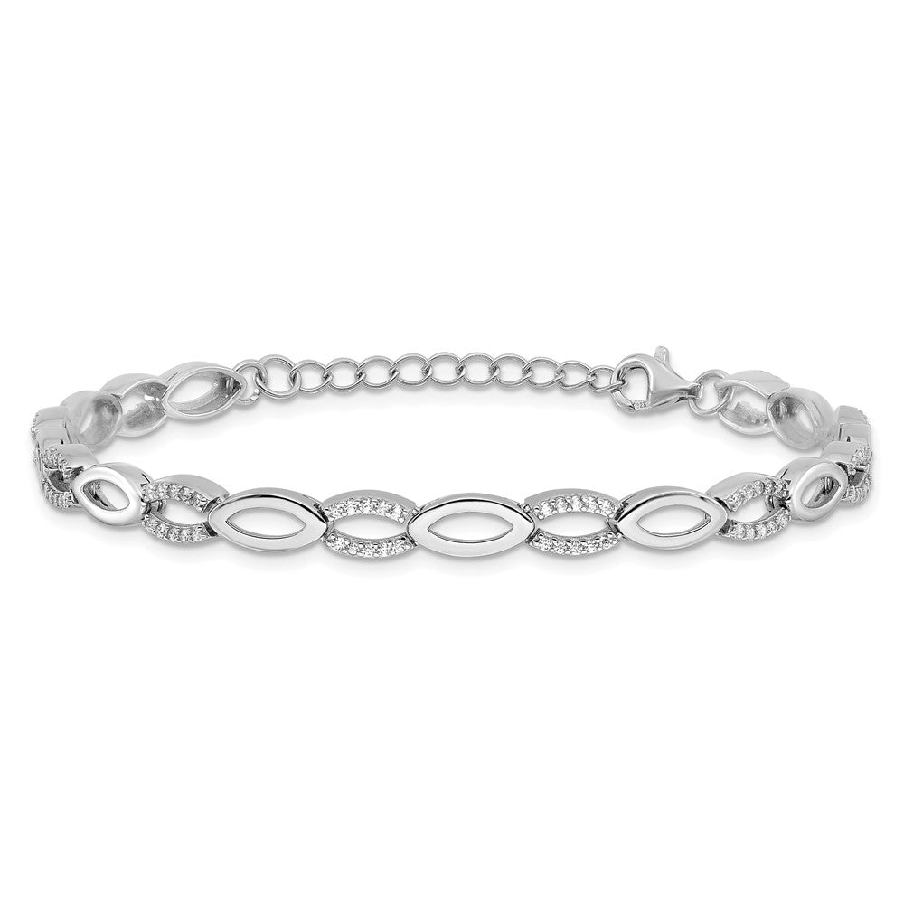 Cheryl M Sterling Silver Rhodium-plated Brilliant-cut CZ Marquise Shaped Link Bracelet with Extender