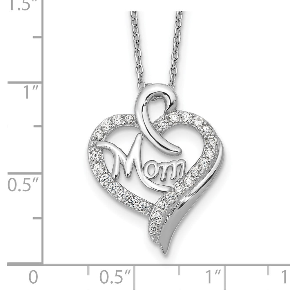 Cheryl M Sterling Silver Rhodium-plated Brilliant-cut CZ MOM Heart Necklace with Extender
