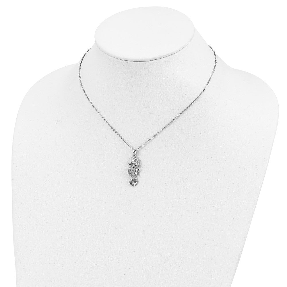 Cheryl M Sterling Silver Rhodium-plated Brilliant-cut CZ Seahorse Necklace with Extender