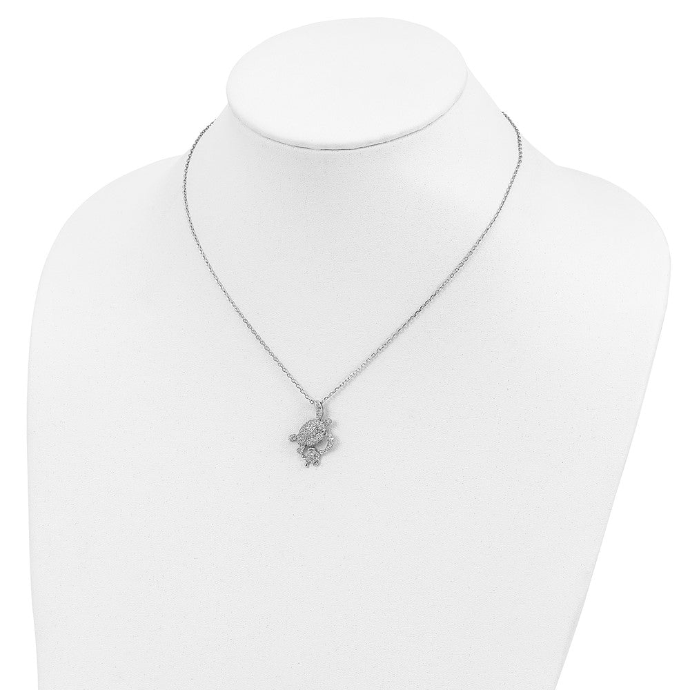 Cheryl M Sterling Silver Rhodium-plated Brilliant-cut CZ Turtles Necklace with Extender