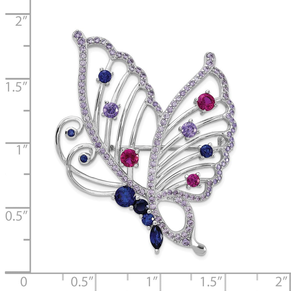 Cheryl M Sterling Silver Rhodium-plated Brilliant-cut Lab Created Ruby/Marquise-cut and Brilliant-cut Lab Created Sapphire/Brilliant-cut Purple CZ Butterfly Pin