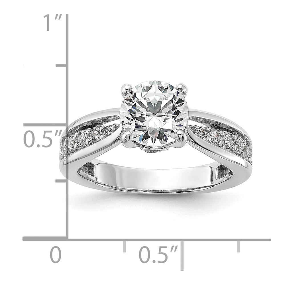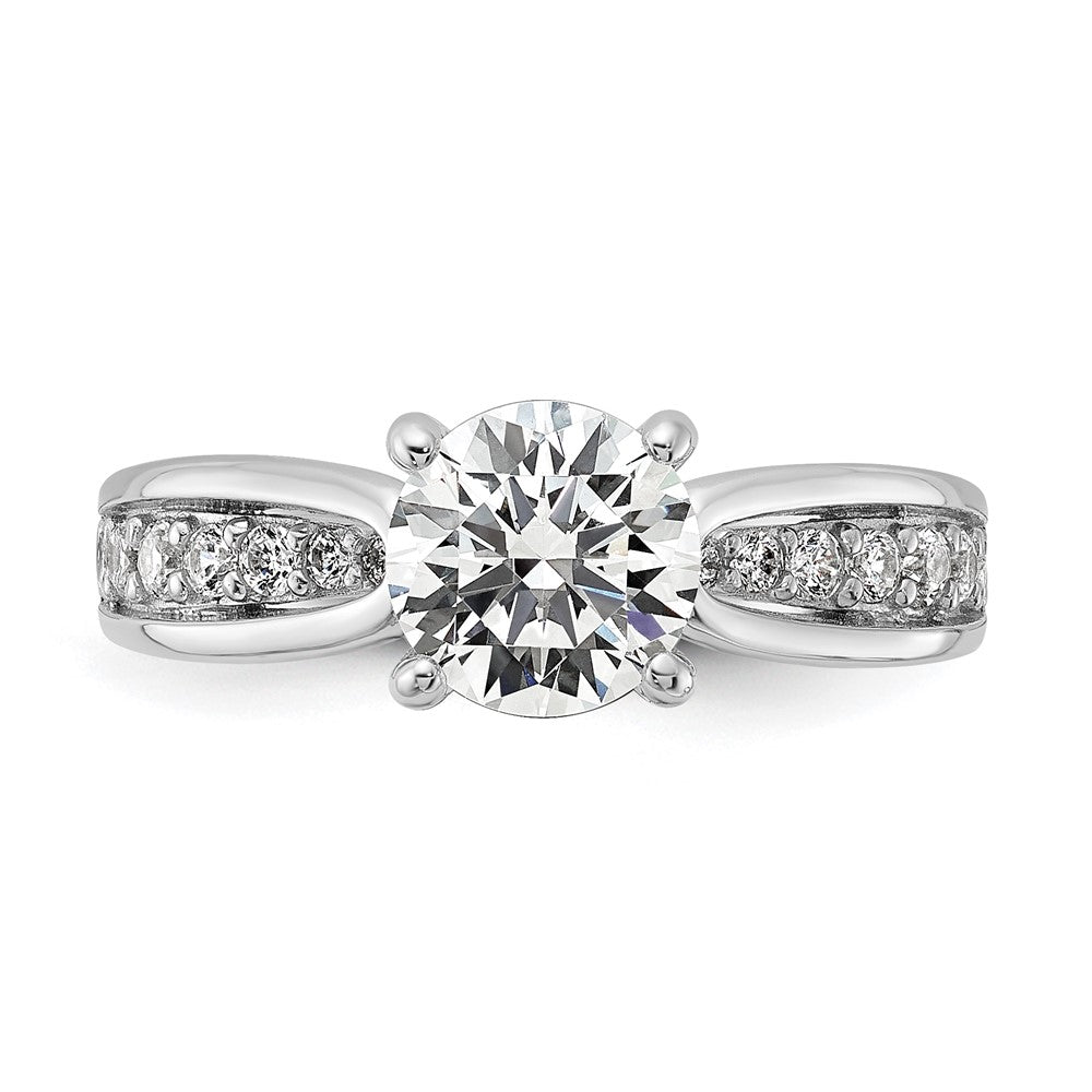 Cheryl M Sterling Silver Rhodium-plated Brilliant-cut Round CZ with Side Stones Fashion Ring