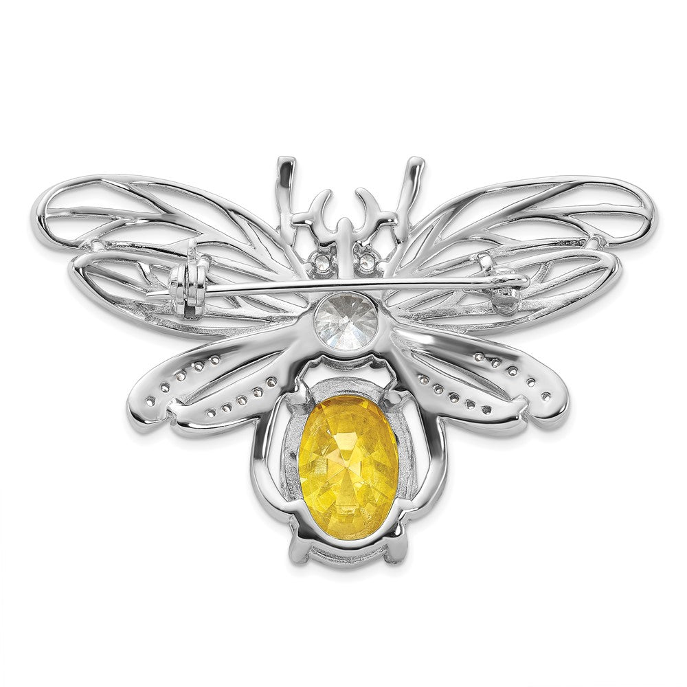 Cheryl M Sterling Silver Rhodium-plated Brilliant-cut Yellow and White CZ Bee Pin