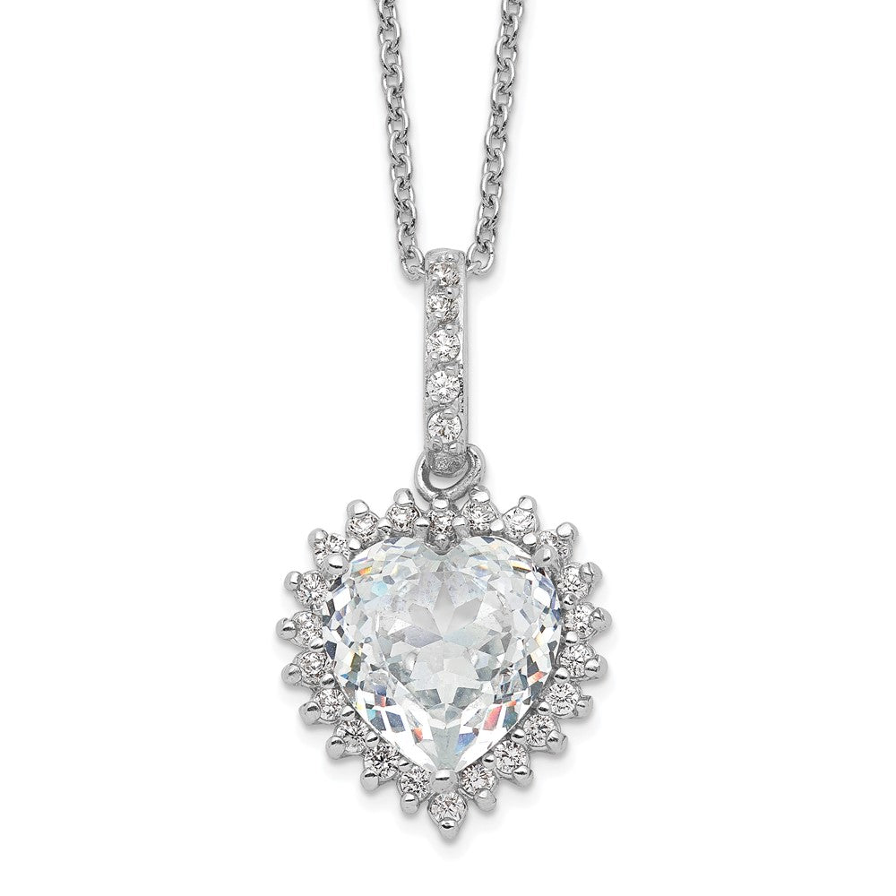 Cheryl M Sterling Silver Rhodium-plated Fancy 100-Facet and Brilliant-cut CZ Heart 18. Necklace