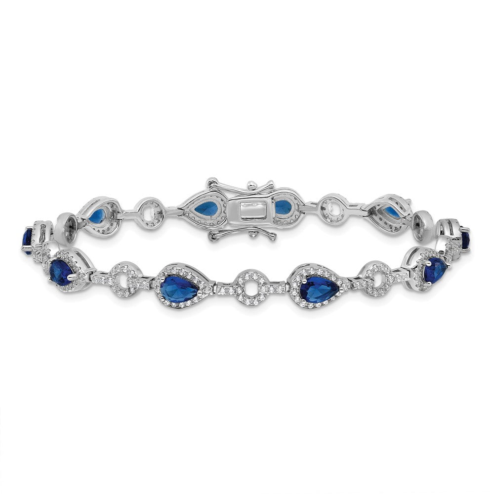 Cheryl M Sterling Silver Rhodium-plated Fancy Brilliant-cut Blue Glass & Brilliant-cut White CZ Circle and Teardrop 7. Bracelet