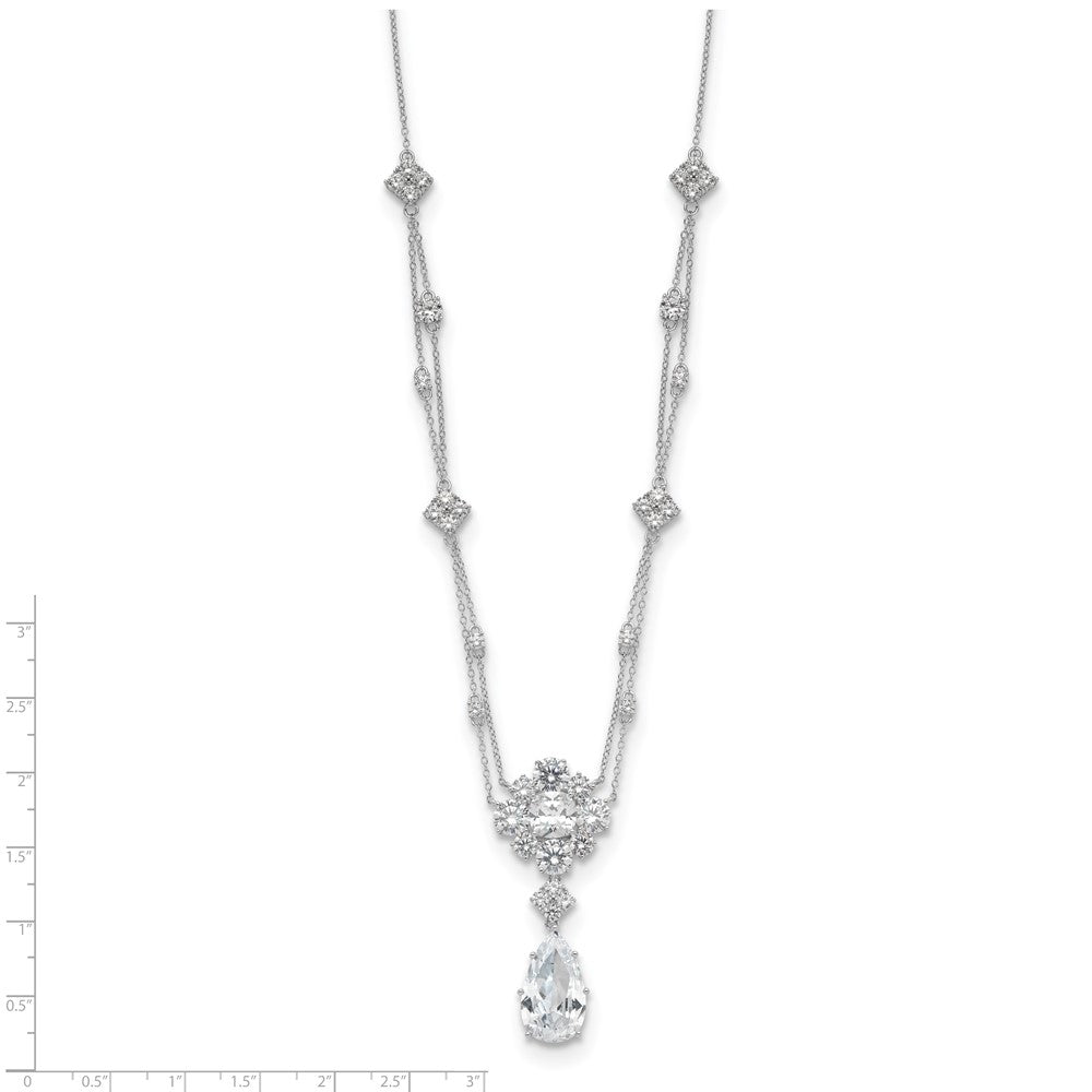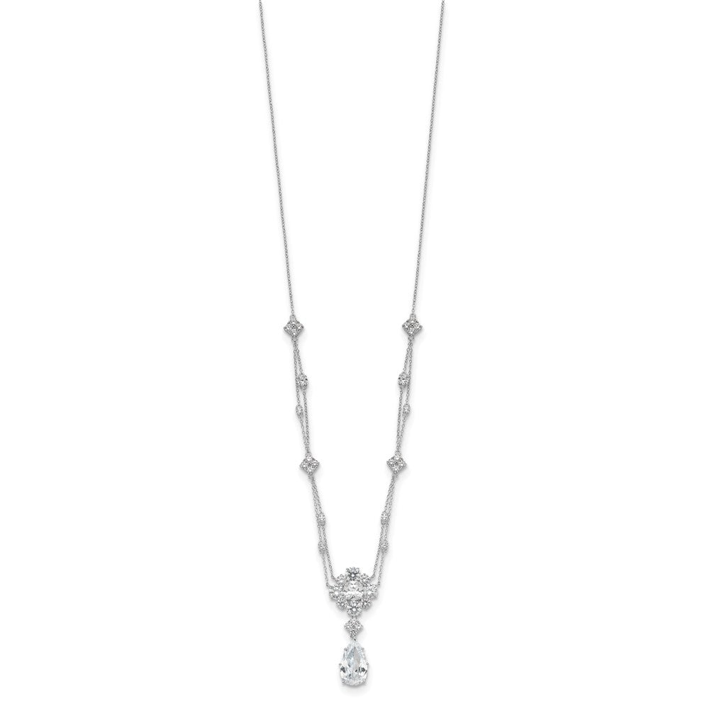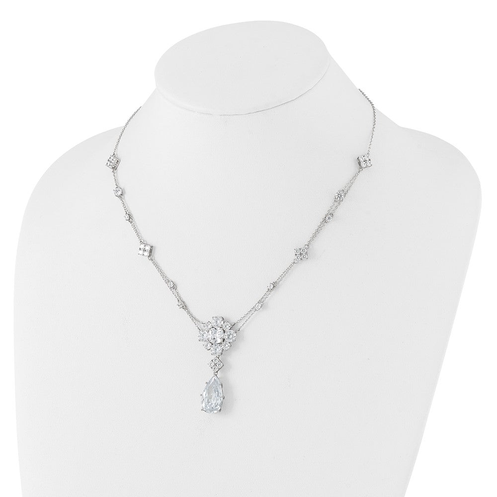 Cheryl M Sterling Silver Rhodium-plated Fancy Cushion-cut and Brilliant-cut CZ Teardrop Dangle Necklace